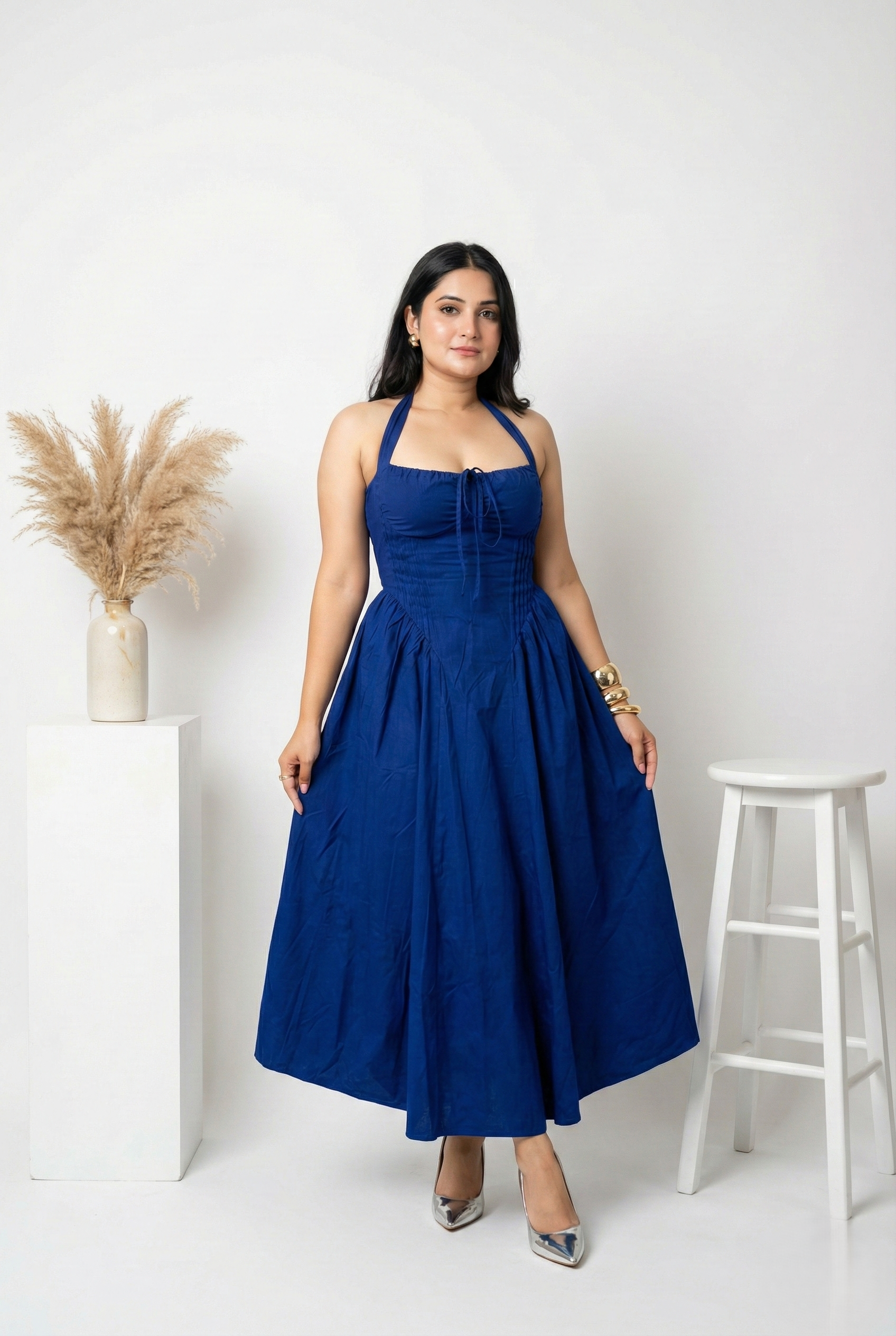 Blue Gathered Corset Dress